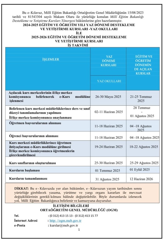 Destekleme ve Yetiştirme Kursları Yaz Dönemi, Öğretmen ve öğrenci başvuruları 11-18 Haziran 2025 tarihlerinde alınacaktır.